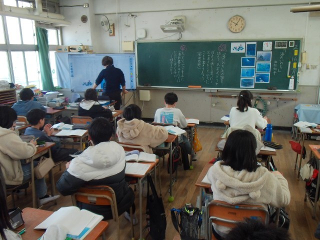 2組は、国語の「海のいのち」のまとめの学習で、全体の感想や物語の主題について考えていました。