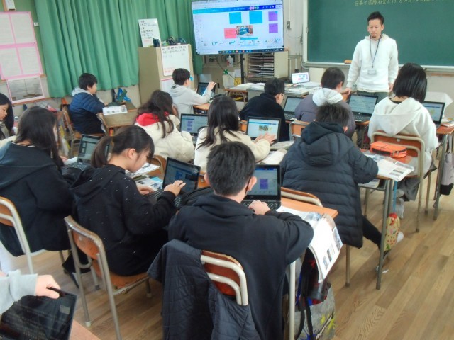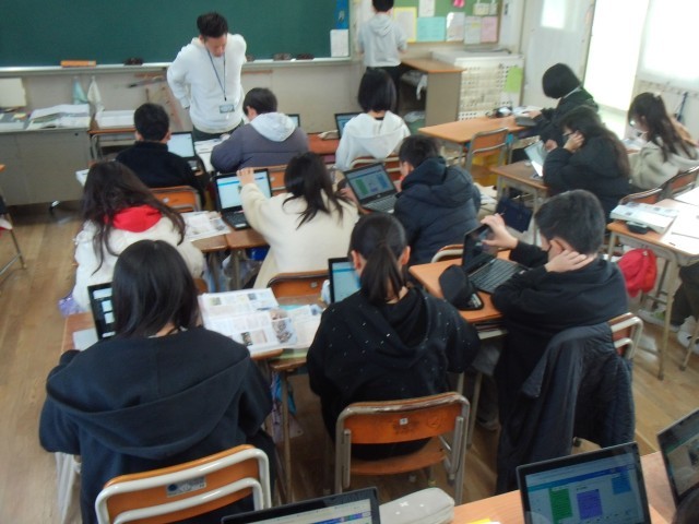 3組h、学習者用端末を使って、社会の「国際社会での役割」の学習をしていました。