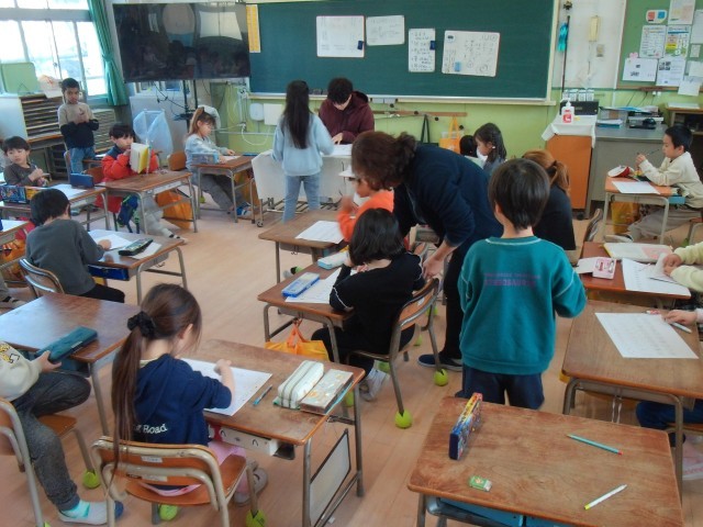 2組は、漢字のテストをがんばっていました。