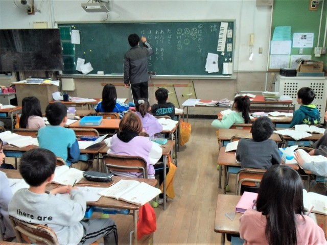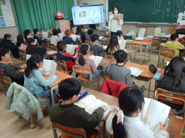 1組は、国語の「お手紙」をみんなで音読をしていました。2組は、国語の「はさみことば」を楽しく学習していました。