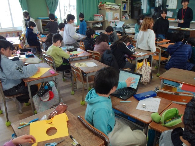 1組も2組もお祝いのメッセージを作っていました。