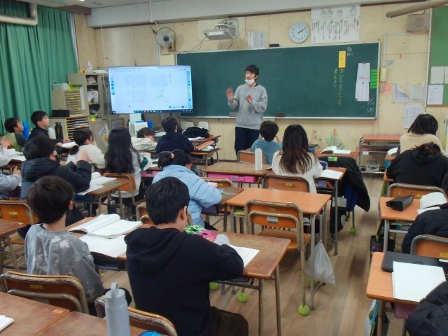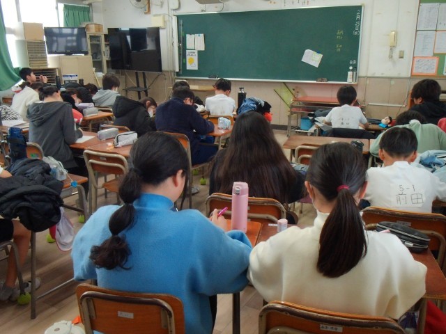 1組は、クラスや自分の振り返りを書いていました。2組は国語の「方言と共通語」の学習をしていました。