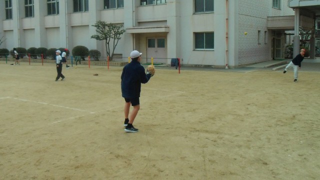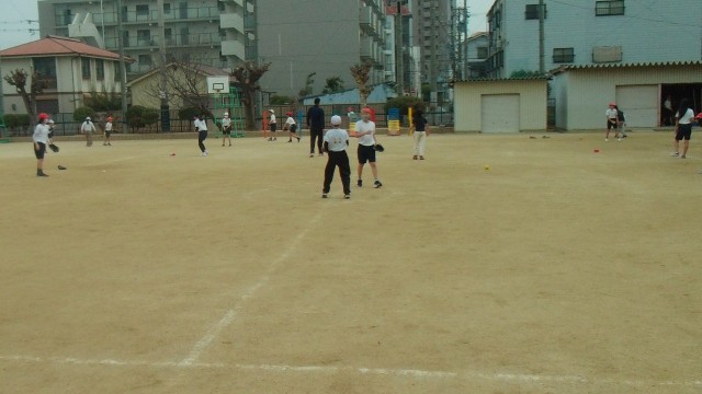 2組は運動場で体育の「ティーベース」の学習をしています。