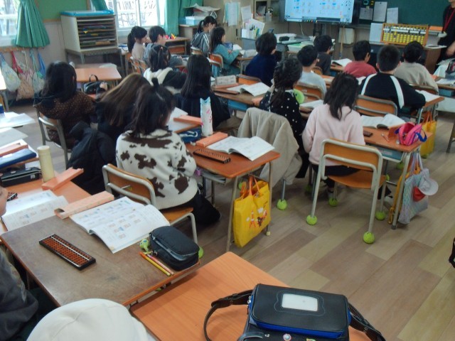 1組は、算数の「そろばん」の学習をしています。