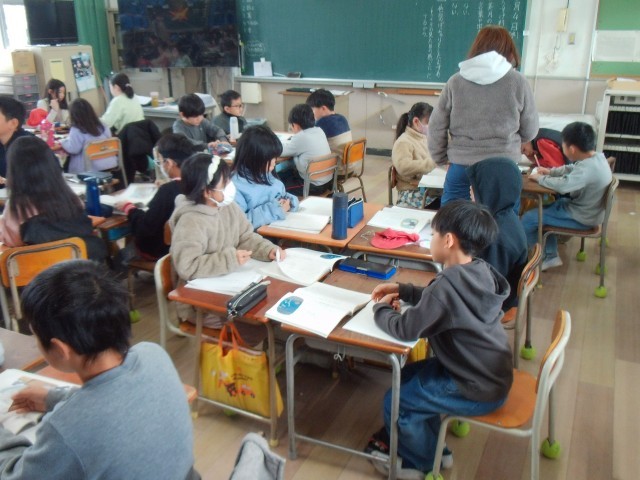 2組は、国語の「ゆうすげ村の小さな旅館」についてグループで話し合いをしています。