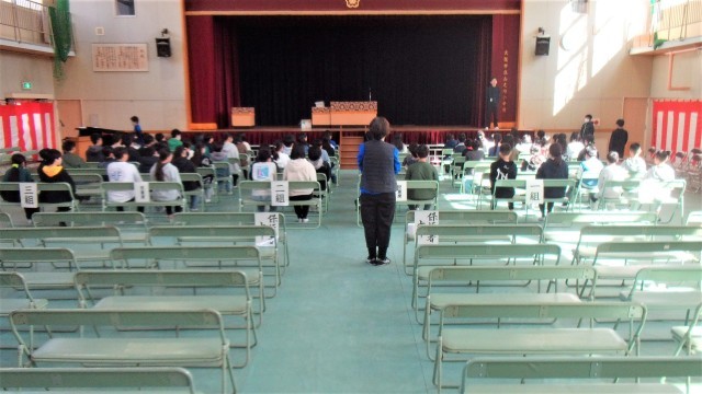 講堂での卒業式の練習が始まっています。緊張感をもってがんばっています。