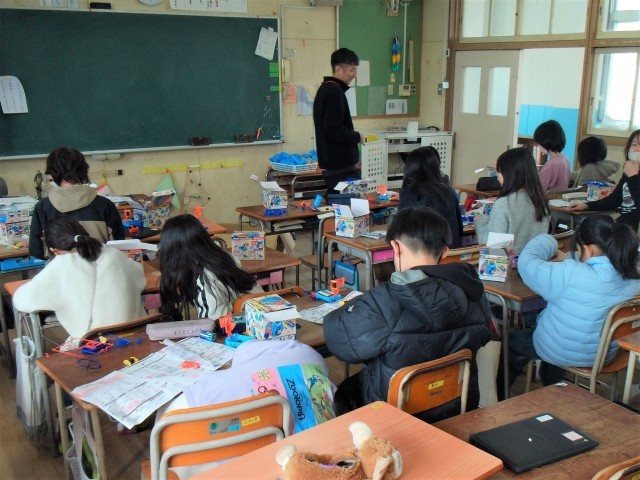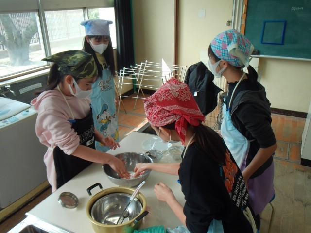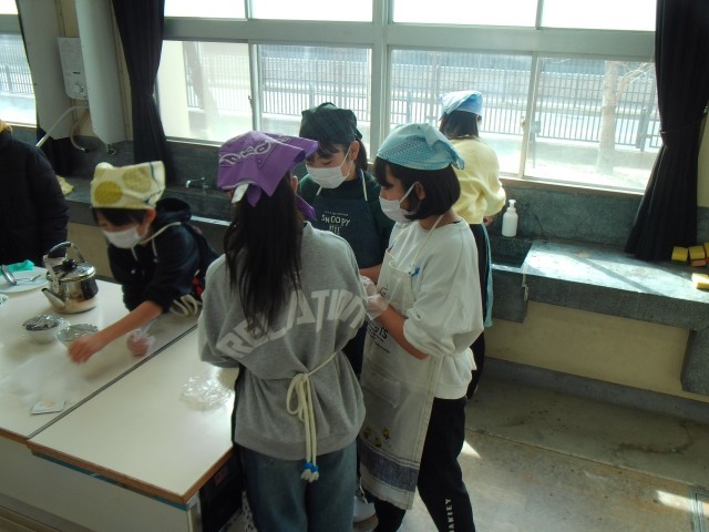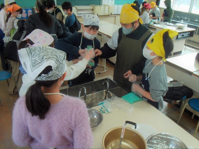 また、1組は家庭科室で調理実習をしています。2組は理科の「電磁石のはたらき」の学習をしています。