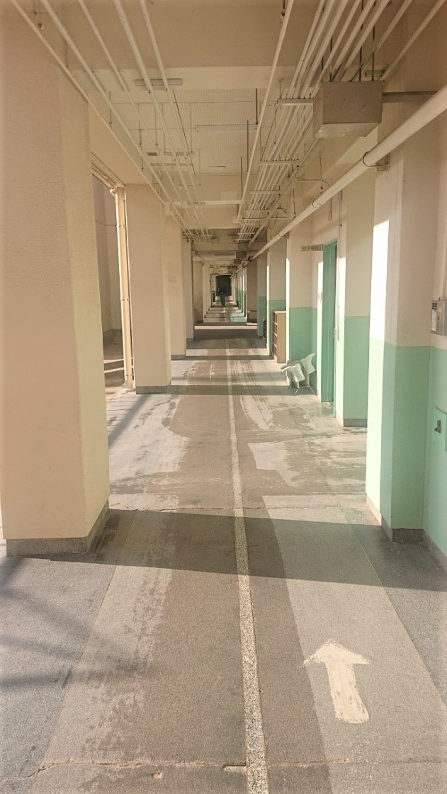 管理作業員さんが朝から廊下をきれいにしてくださっています。