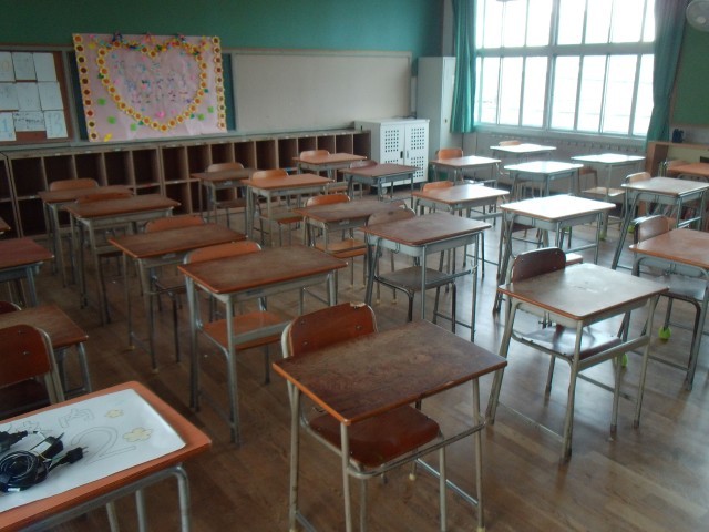 1組も2組も3組も、卒業して教室にはだれもいません。