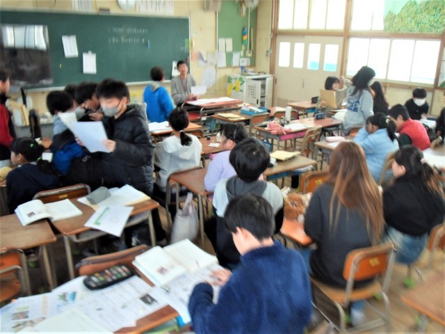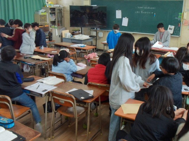 1組は「お楽しみ会」をしています。2組は、手紙や通知表をもらっています。1組も2組もよくがんばりましたね。
