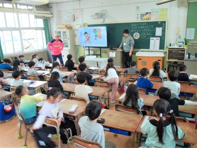 1年生は2クラスとも学校やクラスのやくそくについて学習していました。