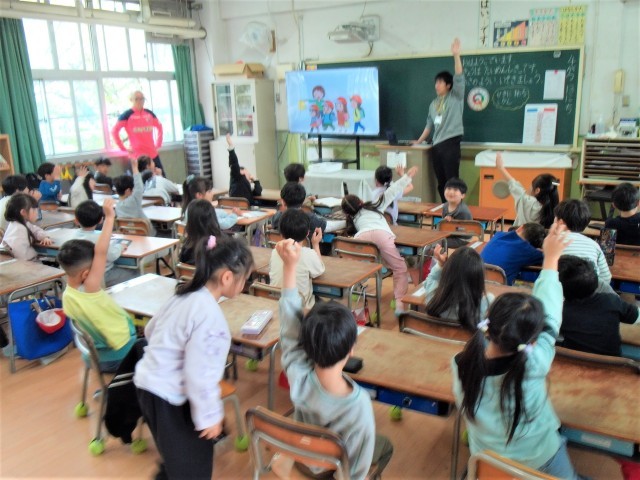 よい態度でしっかり話を聞いていました。元気よくあいさつをしたり、まっすぐ手を挙げたりもできています。すばらしい。