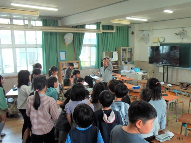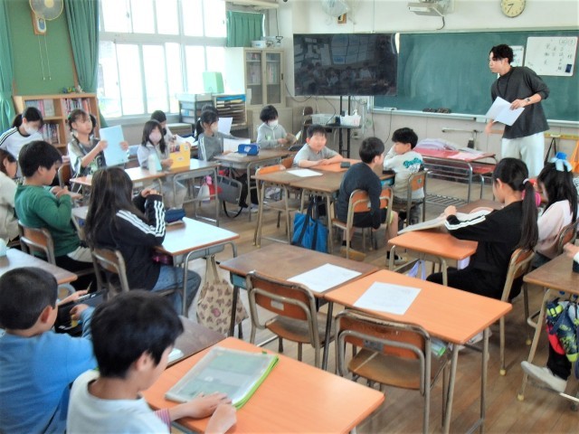 4年生は、朝の会で、プリントを配ったり学習の準備をしたりしていました。