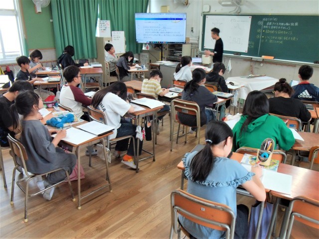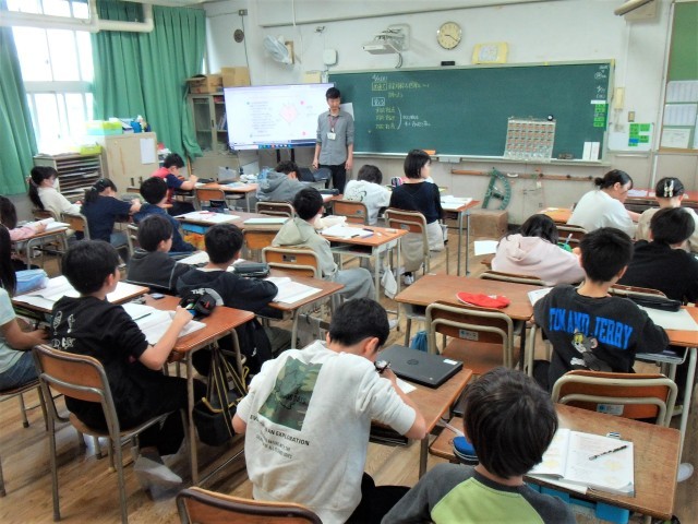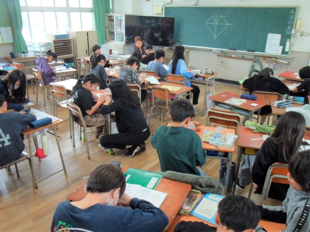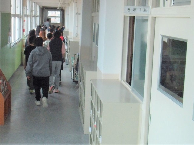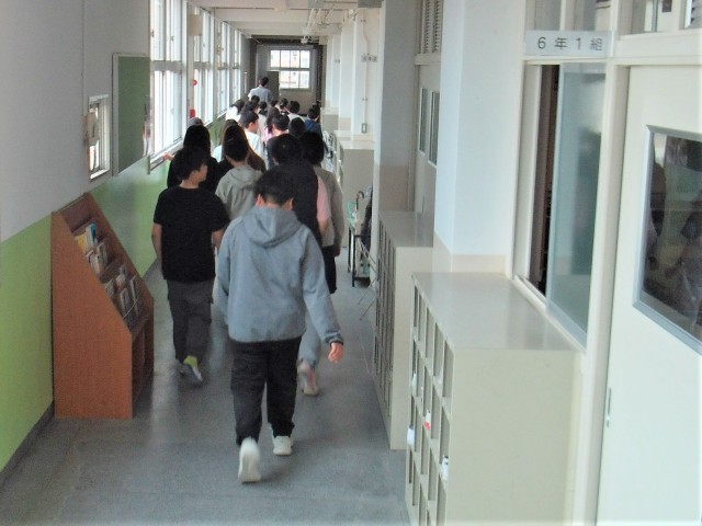 また1組は並んで図書室に行っていました。2組は音楽の学習をしていました。