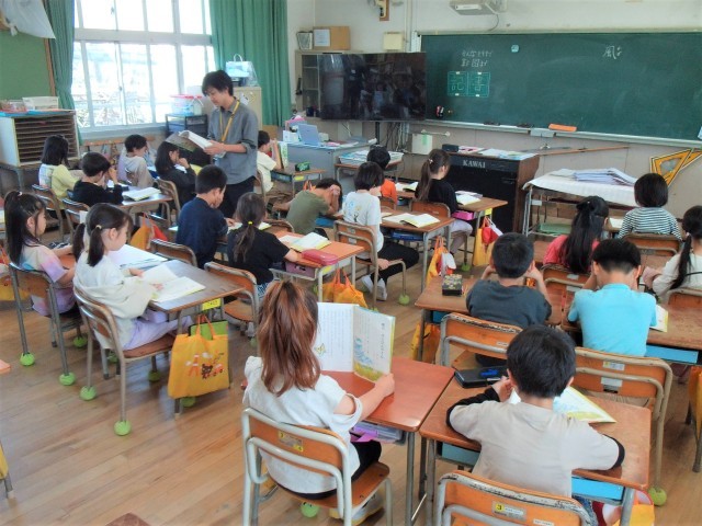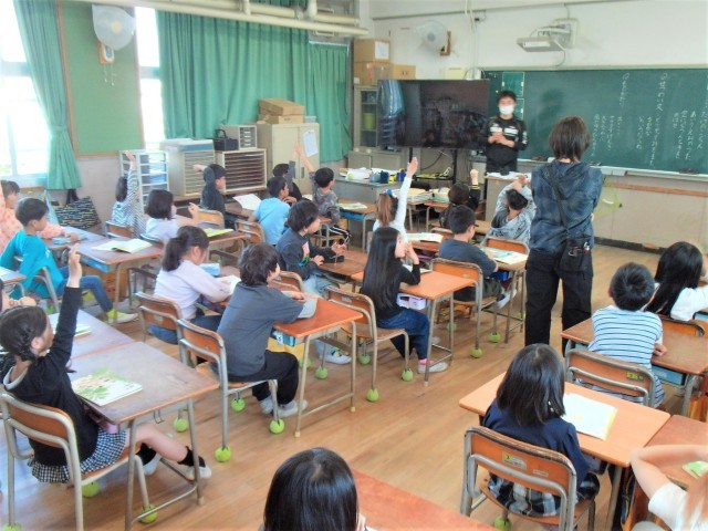 1組も2組も国語の「風のゆうびんやさん」の学習をしていました。