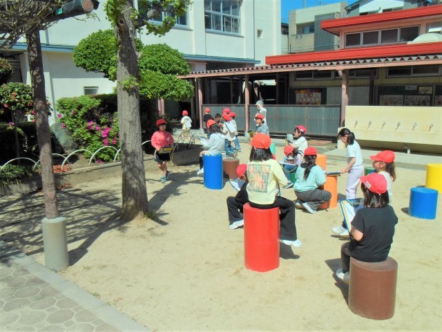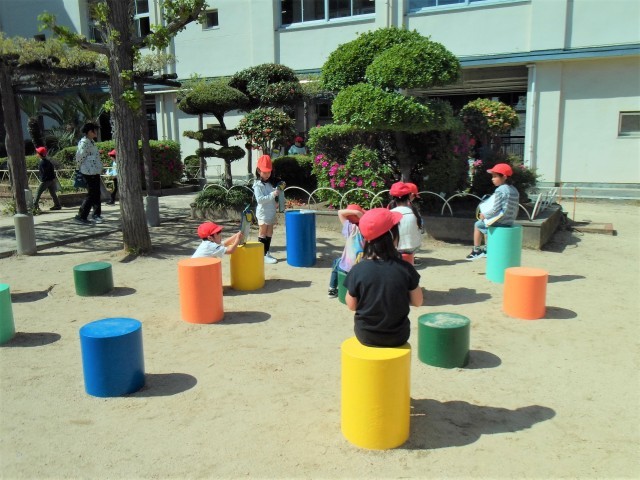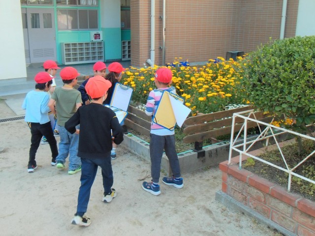 また、1組は生活で、運動場で「春の自然」の観察をしていました。