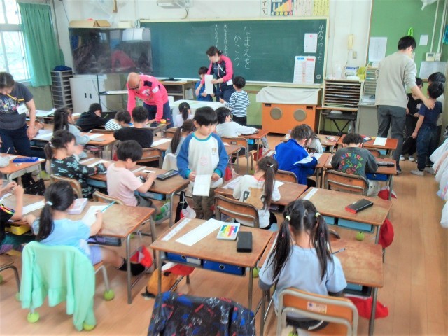 1組は算数で「かず」の学習をしていました。2組はなまえを書く練習をしていました。