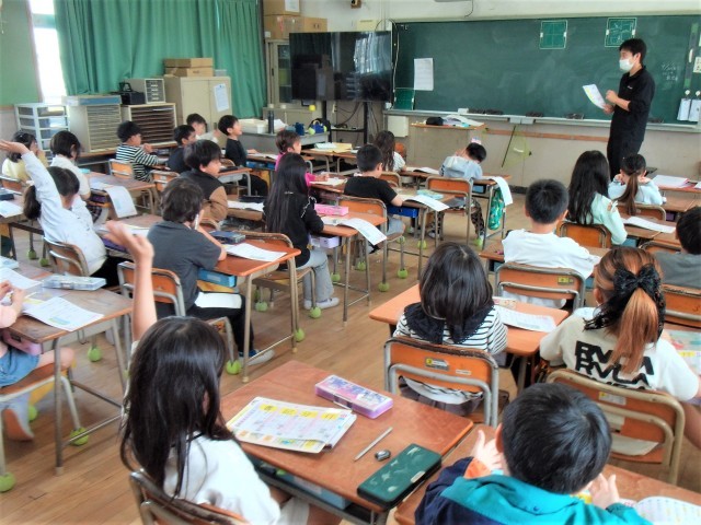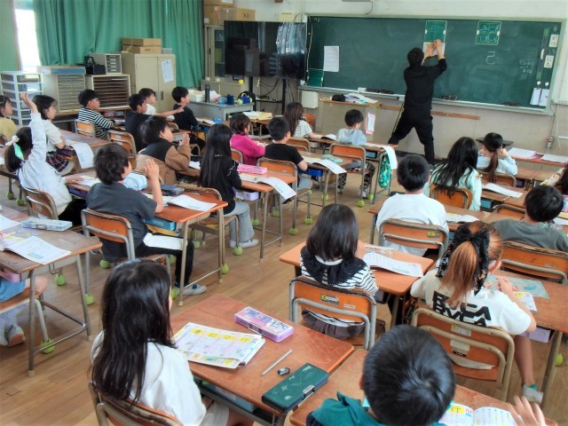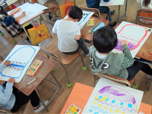1組は図工で「ふしぎなたまご」をかいていました。2組は新出漢字の学習をしていました。