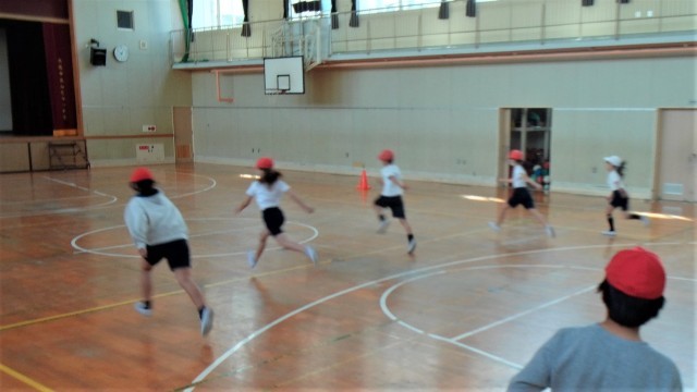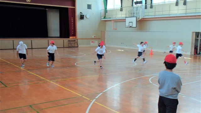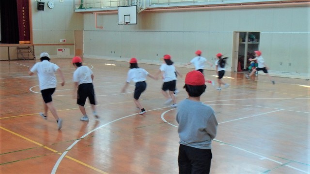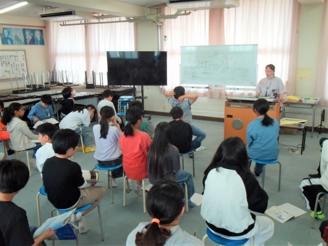 1組は講堂で体育をしていました。2組は音楽室で合唱の学習をしていました。