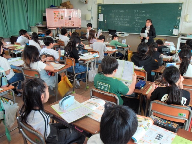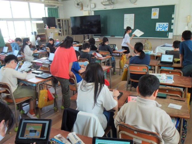 1組は家庭科の調理についての学習をしていました。2組は漢字ドリルが終わった人から学習者用端末を使って学習をしていました。