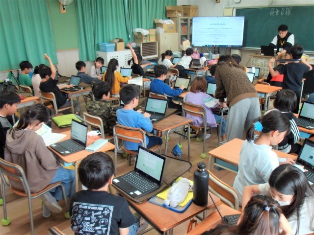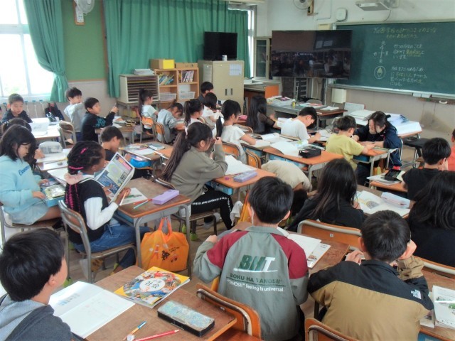 1組は学習者用端末を使った学習を、2組は社会で「学校のまわりの様子」についての学習をしていました。