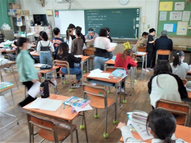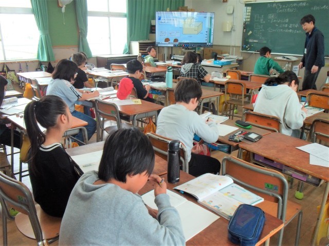 1組と2組と分割教室の3クラスで、算数の学習をしていました。
