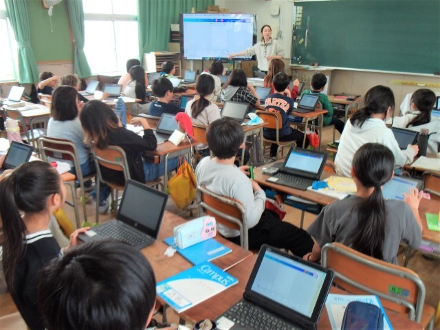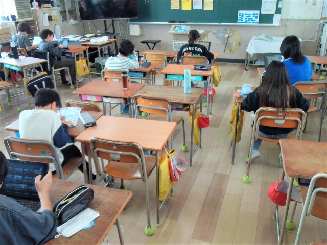 また、1組は学習者用端末を使った学習を、2組は理科の学習をしていました。