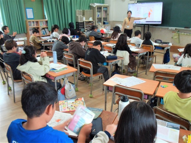 1組は理科の「天気」について学習をしていました。2組は社会の「大阪府」について学習していました。