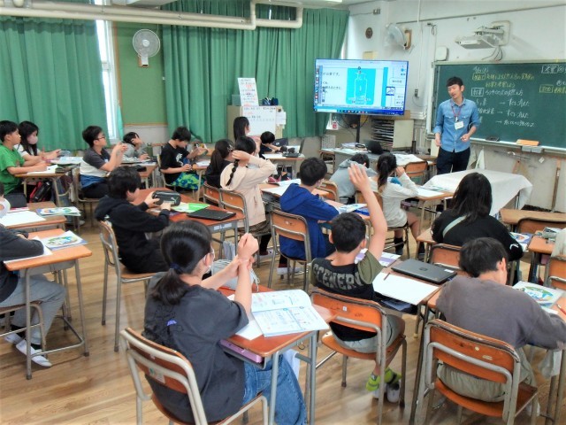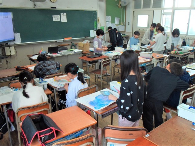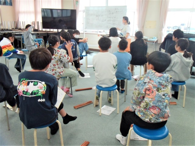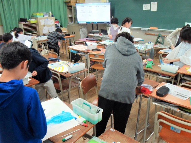 1組は図工で絵の具をブラシやストローを使って色をつける活動をしていました。2組は音楽でリズムについての学習をしていました。3組は理科の「気体の燃え方」の学習をしていました。