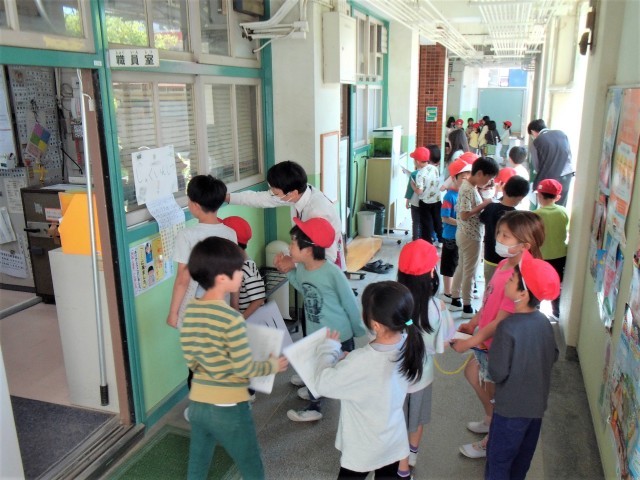 2年生、よくがんばりましたね。1年生、「学校たんけん」ができてよかったね。