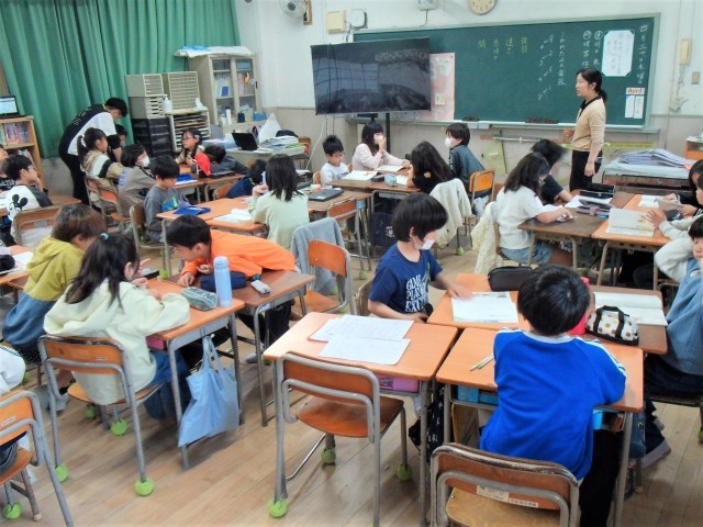 1組は地区別児童会についての学習をしていました。2組は音読の仕方の確認をしていました。