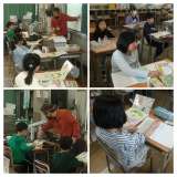グループで朗読の発表をしています。