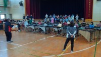 5年生が1時間目に、4階の音楽室にあるいろいろな楽器を力を合わせて講堂に運んでくれました。さすが高学年!ありがとう。これから講堂で合奏の練習が始まります。がんばってね。