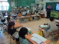 1組は、国語の「お手紙」をみんなで音読をしていました。2組は、国語の「はさみことば」を楽しく学習していました。また1組は、図工で「作品袋」に思い思いに絵を描いていました。2組は、「わたしのたからもの」...