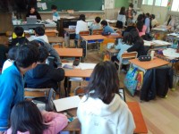1組は、学校のマスコットキャラクターの「やまっち」の活用について話し合い、盛り上がっていました。2組は、漢字のテストをがんばっていました。また、合同で、講堂で合奏の練習をしていました。いよいよですね!