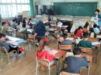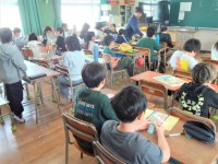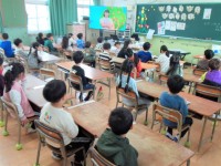 1年生の2日目です。とてもよい姿勢で、お行儀よく、また楽しそうにがんばっていました。そして、1組も2組もくつがきれいにそろっていました。本当にすごい!