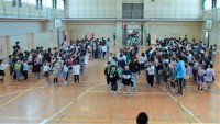 3つのクラスに分かれて算数の学習をしていました。また、1組は体育のタグラグビーの学習を、2組は外国語活動でいろいろな国のあいさつについて学習をしていました。1組も2組もくつがきれいにそろっていました。