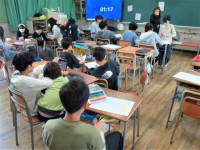 1組は外国語の学習で、いろいろな国の場所とあいさつについて学習をしていました。また、1組は家庭科の調理について、2組は国語の物語文の学習をしていました。