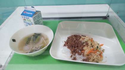 今日の献立は ・ビビンバ ・トック ・牛乳 です。