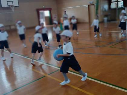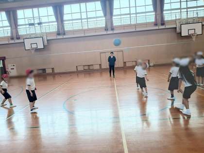 まだ体が小さい子どもたちなので、ボールを力強く投げられる子もいれば、思い通りに投げられない子もいます。そんな中、バレーボールの“アタック”のように投げて(!?)いた子もいました(写真中央)。