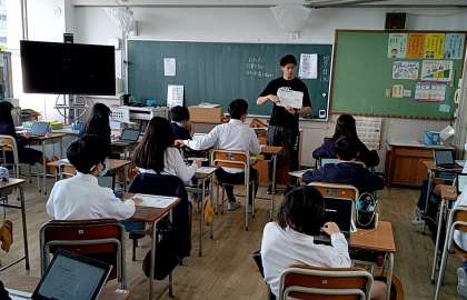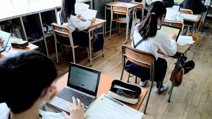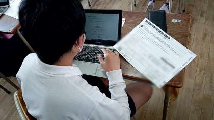 昨日の学テとは少し違い、わくわく問題(国語、算数)と理科の問題をあっさり(!?)と解いた後は、タブレットを使ってアンケートに答えていました。QRコードを読み取り、答案番号を入力すればあっという間にアンケートの画面になり、順番に答えていきます。