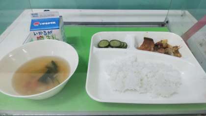 今日の献立は ・ホイコウロー ・きゅうりのピリ辛あえ ・中華スープ ・ごはん ・牛乳 です。