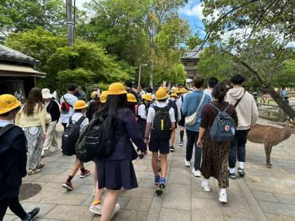 奈良公園内を歩き、東大寺大仏殿へと向かっています。間もなく奈良の大仏様とご対面です。