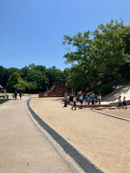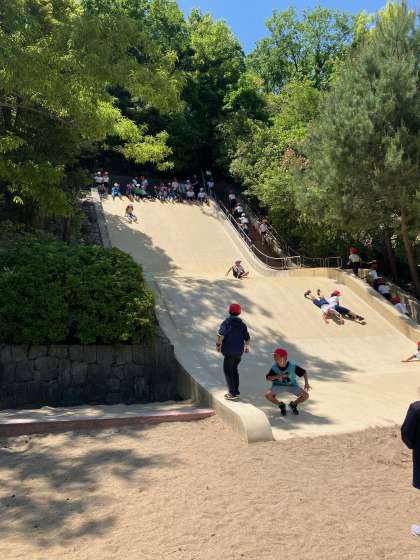 錦織公園名物(⁉)の大きな滑り台で楽しんでいるようです。