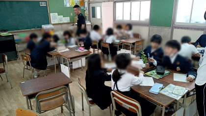 5/13 3年 理科 公開日 2024/05/13 更新日 2024/05/13 お知らせ 3年生の理科は「チョウを育てよう 」です。 学校のミカンの木にいたアゲハチョウの幼虫をグループで観察していました。 子どもたちがジッと見ているにもかかわらず、黙々とミカンの葉を食べている幼虫の姿がとてもかわいかったです。 いいね(0)