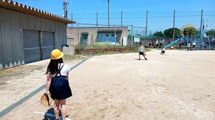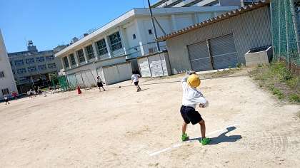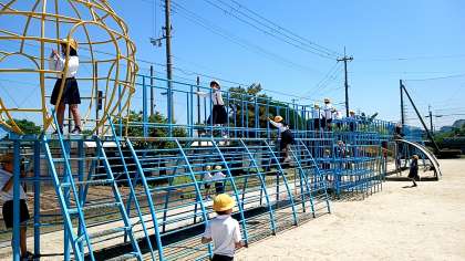 コンビネーション遊具では、低学年の子どもたちが登ったり下りたりと楽しんでいました。また、2年生の子どもたちは、「大谷グローブ」を使ってキャッチボールをしていました。