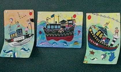 4年生の図工は「黒い船に乗って」です。