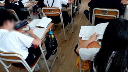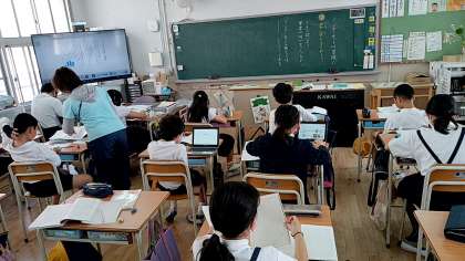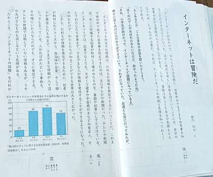 5年生の国語は、説明文「インターネットは冒険だ」です。学習を振り返り、要旨を作文用紙に200字でまとめていました。