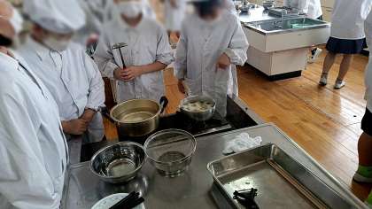 どのグループも、友だち同士協力しながら、安全に気をつけて調理していました。終わった後は、みんなでおいしくいただきました。