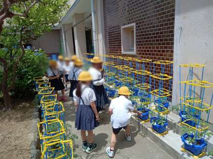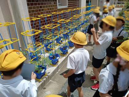 5/30 2年 生活科 公開日 2024/05/30 更新日 2024/05/30 お知らせ 2年生の生活の学習は、ミニトマトの観察です。 今日はタブレットを使って、成長している様子を写真に撮っていました。成長の記録を絵と文字で記録するのと並行して、タブレットの発表ノート機能を使って写真を綴っていくそうです。 写真を残していくことで、ミニトマトの形や大きさ、成長の速さがより分かりやすくなりますね。 いいね(0)